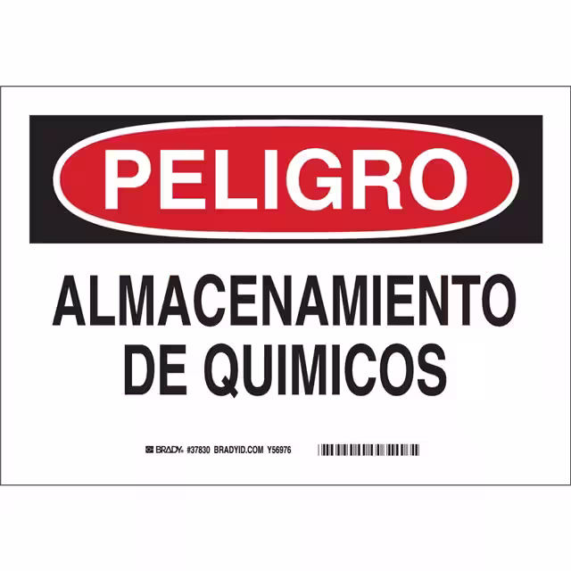 Brady® | Bulk | Active | Black and Red Legend, White Background | Danger | Aluminum | Peligro. Almacenamiento De Quimicos | 14.00" L x 10.00" W (355.6mm x 254.0mm) |