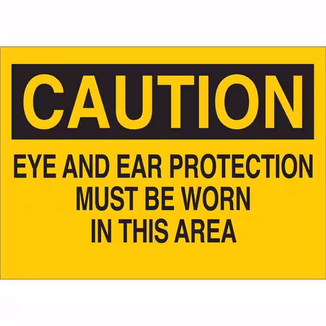 Brady® | Bulk | Active | Black Legend, Yellow Background | Caution | Aluminum | Caution. Eye And Ear Protection Must Be Worn In This Area | 14.00" L x 10.00" W (355.6mm x 254.0mm) |