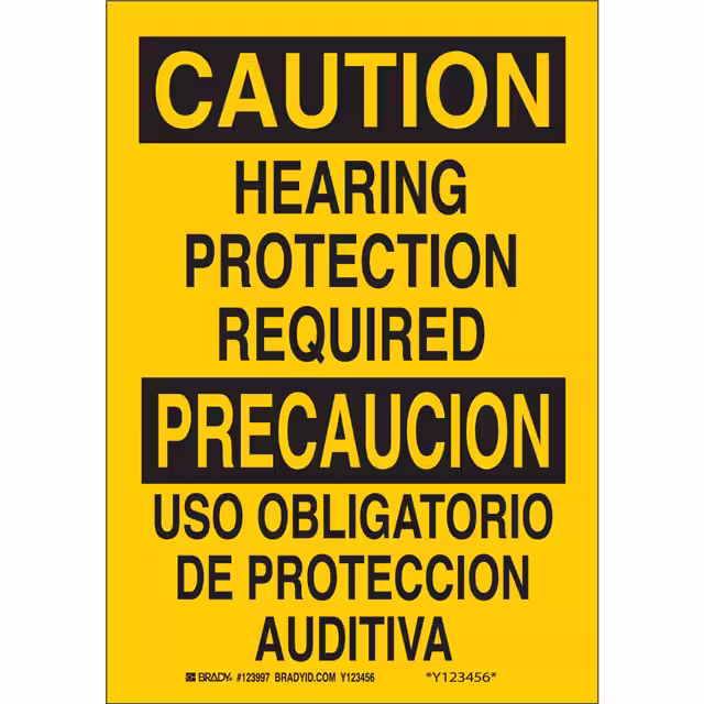 Brady® | Bulk | Active | Black Legend, Yellow Background | Caution | Aluminum | Caution/Precaucion. Hearing Protection Required/Uso Obligatorio De Proteccuib Auditiva | 14.00" L x 10.00" W (355.6mm x 254.0mm) |