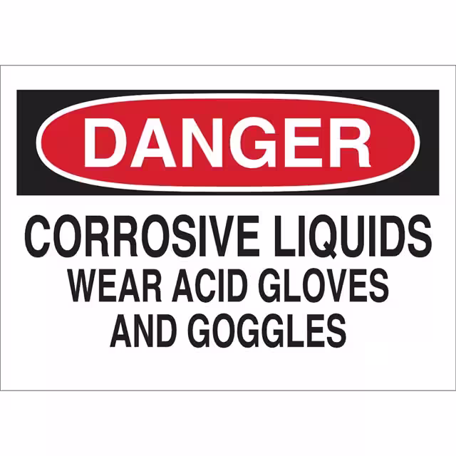 Brady® | Bulk | Active | Black and Red Legend, White Background | Danger | Aluminum | Danger. Corrosive Liquids Wear Acid Gloves And Goggles | 14.00" L x 10.00" W (355.6mm x 254.0mm) |