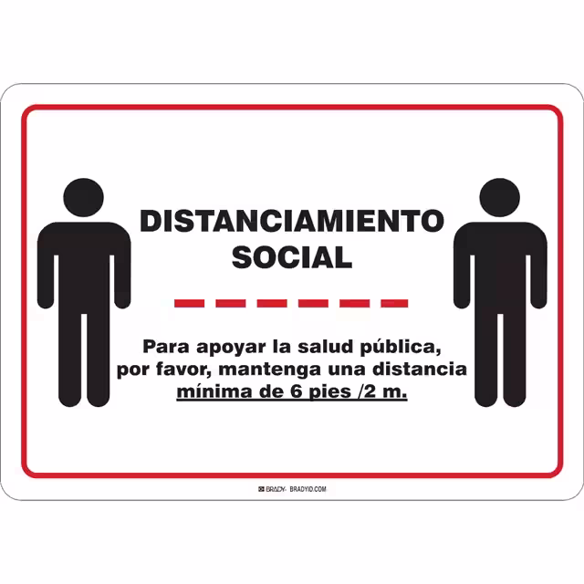 B-555 | Bulk | Obsolete | Black Legend, White Background | Notice | Aluminum | Distanciamiento social. Para apoyar la salud publica, por favor, mantenga una distancia minima de 6 pies/2 m. | 10.00" L x 14.00" W (254.0mm x 355.6mm) |