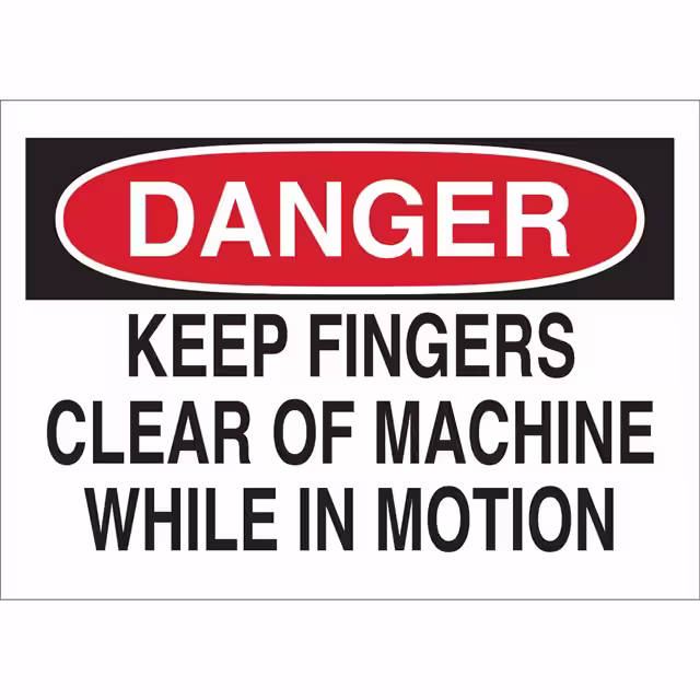 Brady® | Bulk | Active | Black and Red Legend, White Background | Danger | Fiberglass | Danger. Keep Fingers Clear Of Machine While In Motion | 14.00" L x 10.00" W (355.6mm x 254.0mm) |