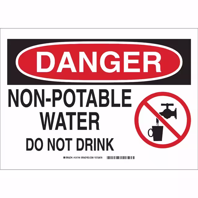 Brady® | Bulk | Active | Black and Red Legend, White Background | Danger | Fiberglass | Danger. Non-Potable Water Do Not Drink | 14.00" L x 10.00" W (355.6mm x 254.0mm) |