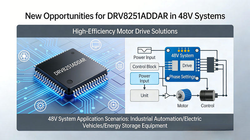 Aunque el 48V trae ventajas, al mismo tiempo se enfrenta a nuevos problemas. El aumento de la complejidad del diseño del circuito, el buen del esquema MOS discreto es demasiado alto, el bloqueo del motor puede dañar fácilmente el sistema y la dificultad de disipación de calor y diseño de protección aumenta. Esta es precisamente la oportunidad para un IC de conducción altamente integrado. Con esta tendencia, DRV8251ADDAR se convierte en una solución muy competitiva.